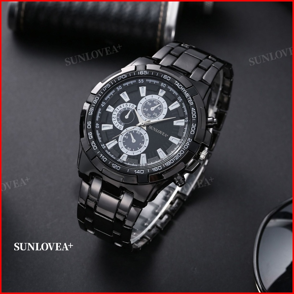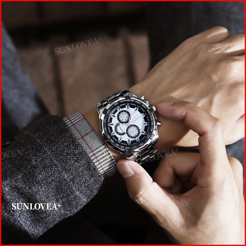 Sunlovea Jam Tangan Pria Gaya Sporty Bisnis Dengan Tali Baja Jam Tangan Mekanis Jam Tangan Kuarsa Tahan Air Penuh Cocok