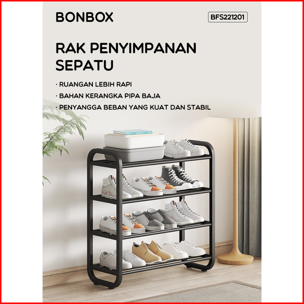 Bonbox Homeliving - Rak Sepatu 4 Layer Floating Shelf Serbaguna Anti Debu Hemat Ruang Bfs221201