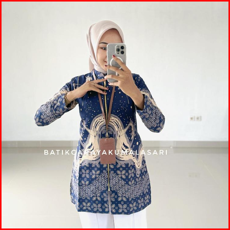 Tunik Pendek Batik Wanita Lapis Trikot Motif Jenna Navy - Atasan Kerja Wanita Bahan Katun Prima