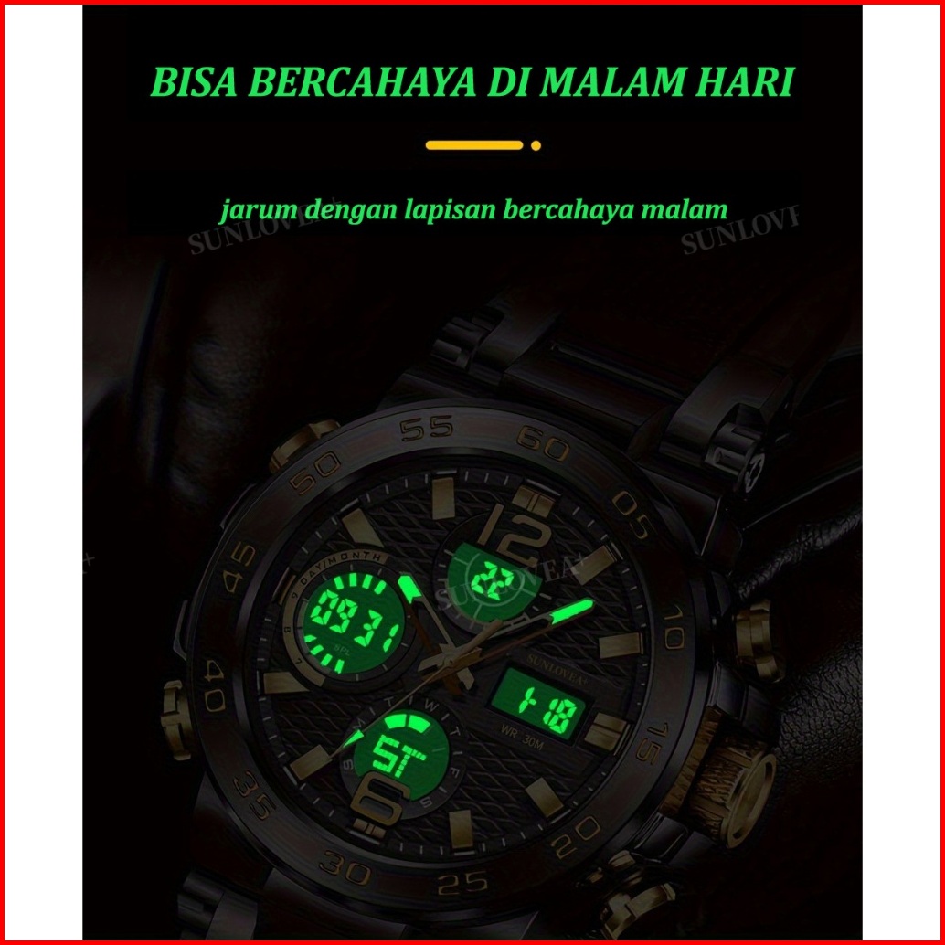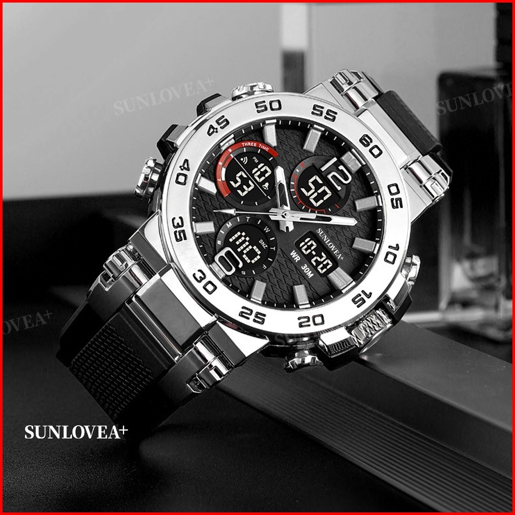 Sunlove A Olahraga Jam Tangan Elektronik Pria Multifungsi Dual Tampilan Mode Santai Mahasiswa Jam Tangan Elektronik