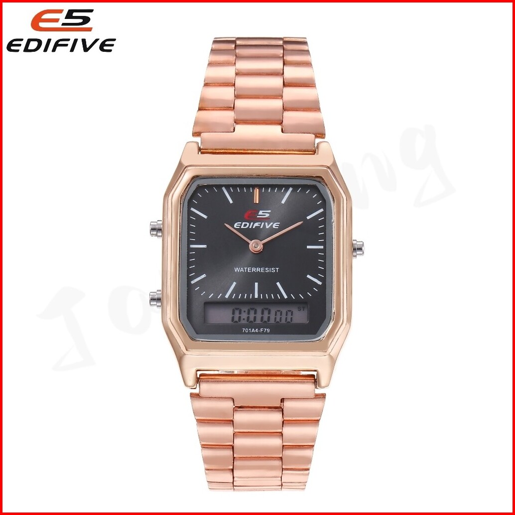 Edifive It9011 Jam Tangan Wanita Persegi Tahan Air Quartz Rantai Stainless Steel Alloy Digital Fashion Gift Watches Terb