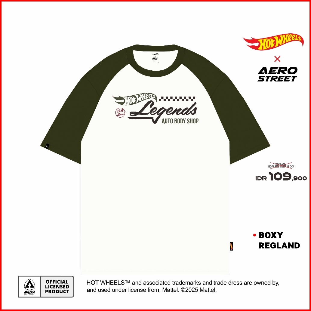 Aerostreet T Shirt Boxy Reglan Hot Wheels Legends Hijau Army Off White Kaos Abbaa