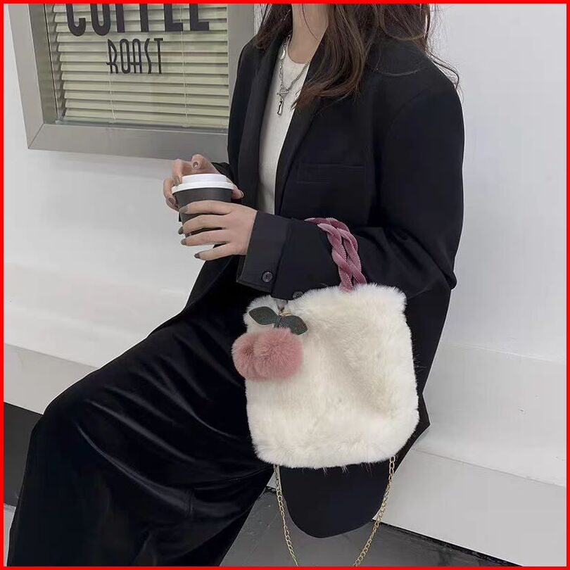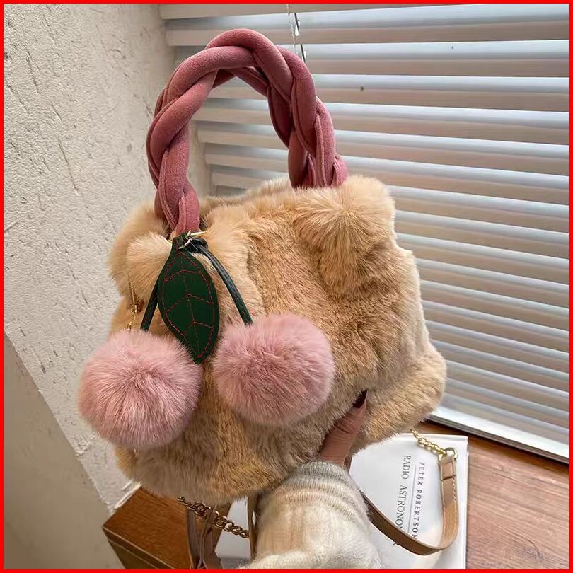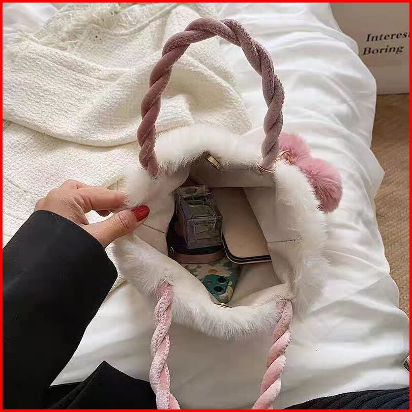 Zyha - Mossery Tas Tangan Mewah Korea Bag Handbag Cewek Berbulu Baru Tote Bag Wanita Kuliah Lucu