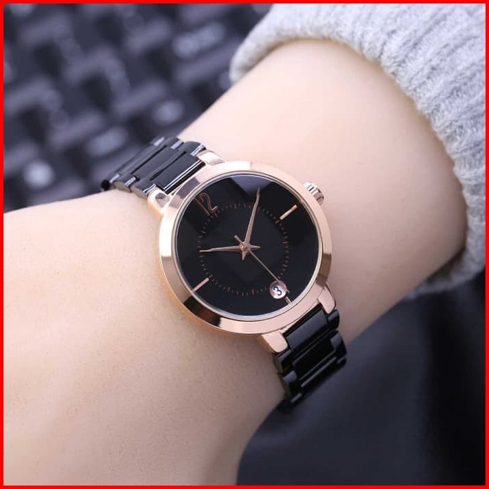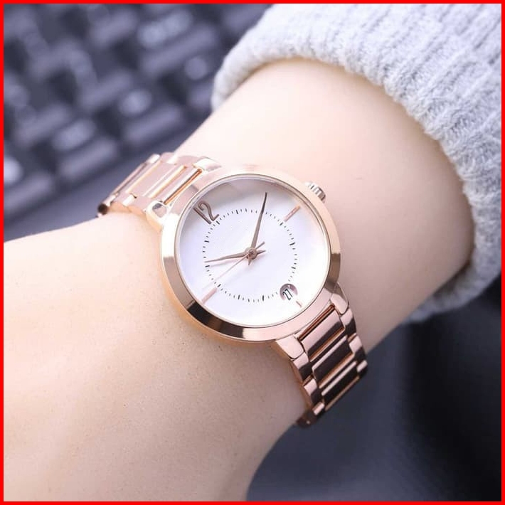 Jam Tangan Wanita Terlaris Analog Anti Air Tanggal On Kaca Belimbing Tali Rantai Solid Free Kalung