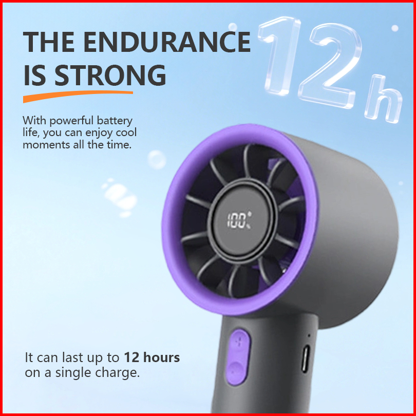 Onlife Kipas Portable Mini 3000mah Mini Kipas Strong Wind 100 Gear Wind Speed Kipas Angin Digital Display Adjustable Tur