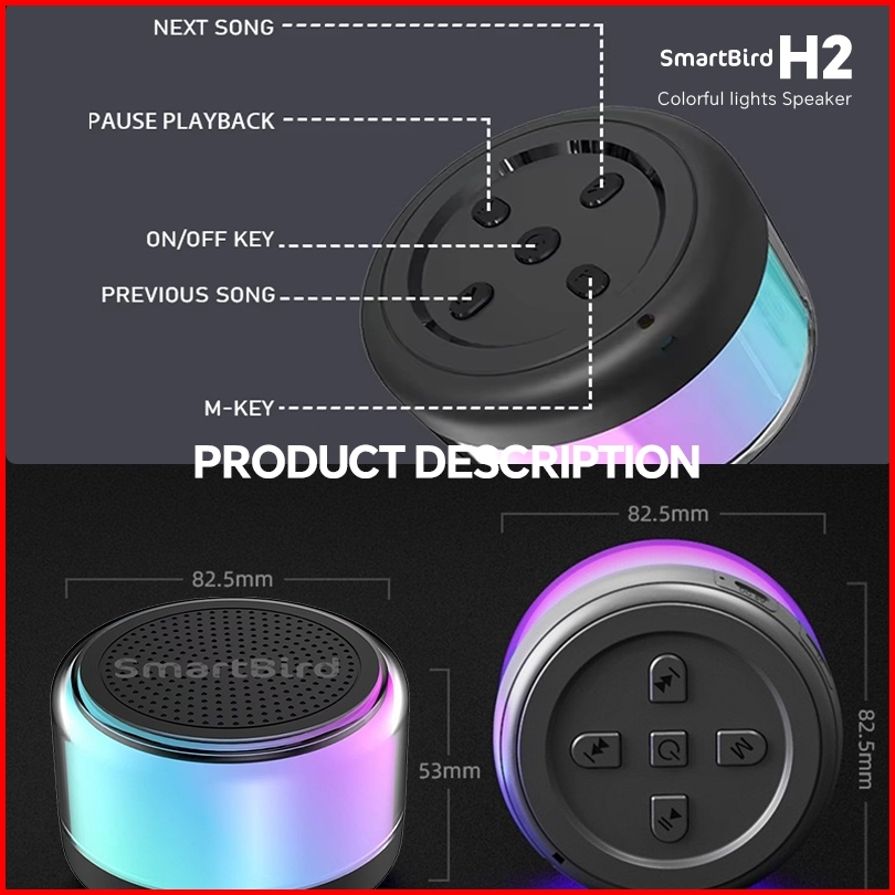 Smartbird Speaker H2 Wireless Bluetooth Small Rgb Colorful Lighting Desktop Speaker Hi-fi Bluetooth Sound Box Player Led
