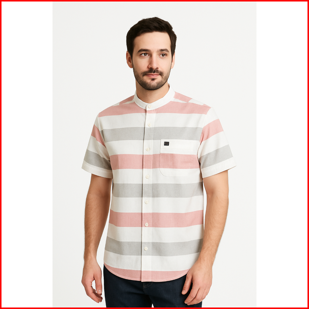 Oisthetic - Kemeja Stripe Pria Lengan Pendek Hem Salur Garis - Garis Kasual Terlaris Kerah Sanghai