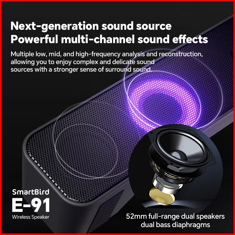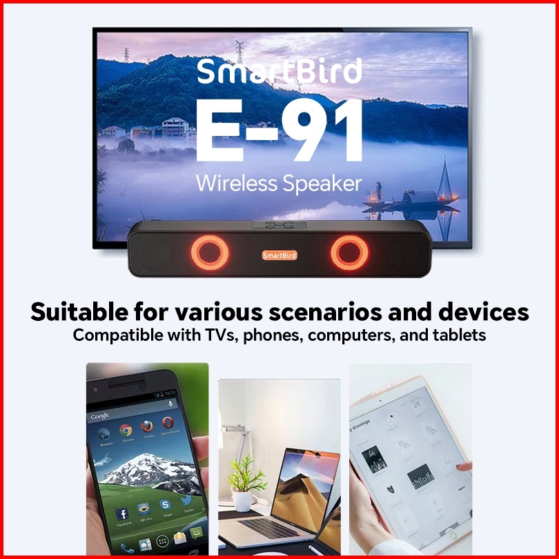 Smartbird Speaker E91 Tv Pc Soundbar Wired Wireless Bluetooth Stereo Rgb Colorful Lights Subwoofer Bar Speaker Soundbar