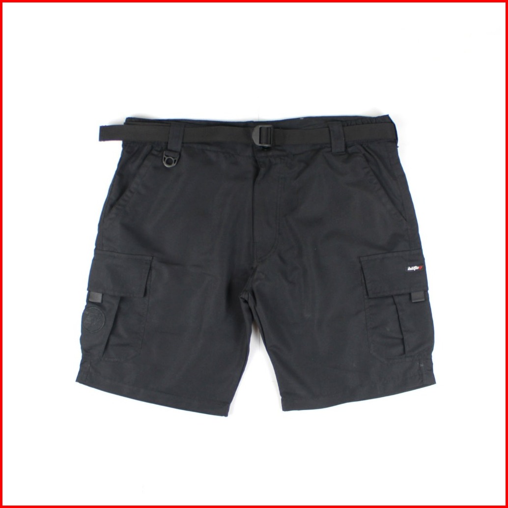 Blith - Celana Pendek Cargo Boardshort Zipper Karet Hitam Bahan Micro Premium