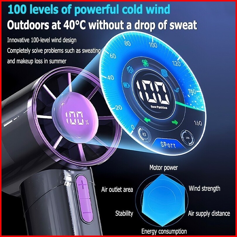 Lion Mart - Kipas Angin Turbo 100 Gear Kipas Mini Genggam Digital Display Portable Kipas Tangan Super Speed 10000rpm