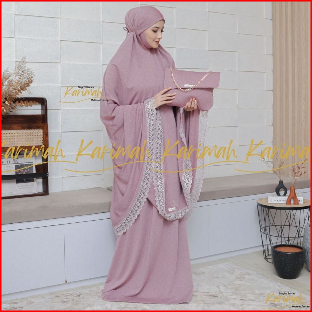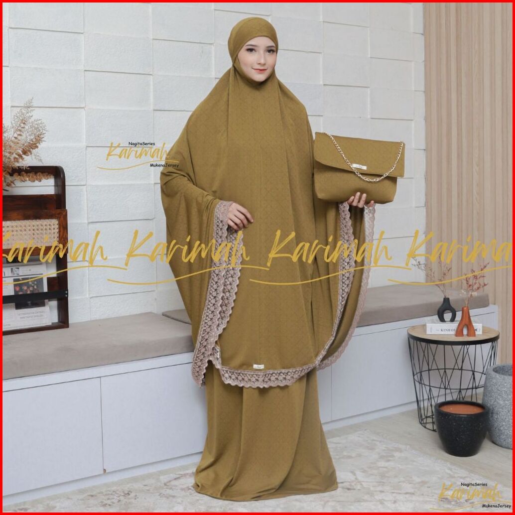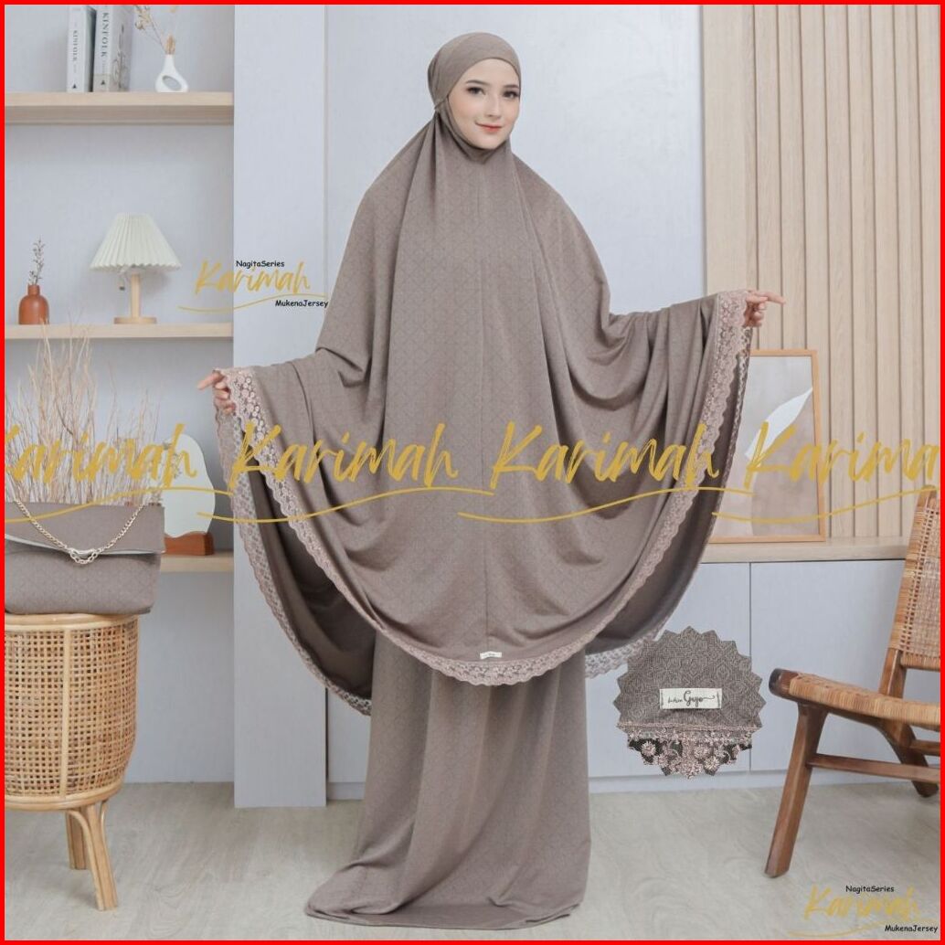 Nagitaseries - Mukena Dewasa Bahan Jersey Jaguard Jumbo Renda Mewah Menutup Dagu Tertutup Karimah