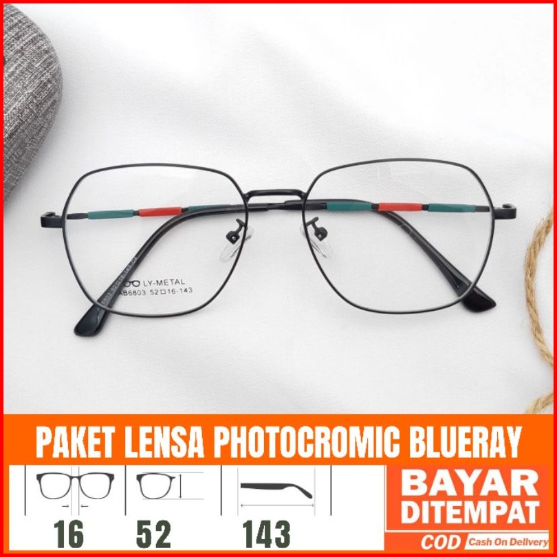 Paket Kacamata 6803 Lensa Antiradiasi Photocromic Blueray