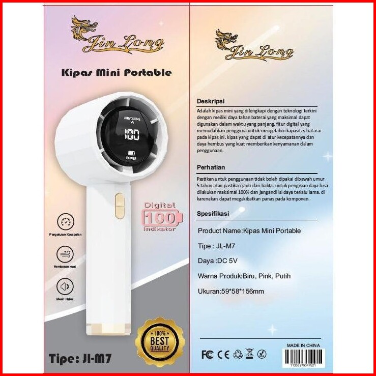 Jinlong Mini Fan Portable Jl M7 Kipas Angin Genggam Indikator Digital Kecepatan Harga Murah Meriah