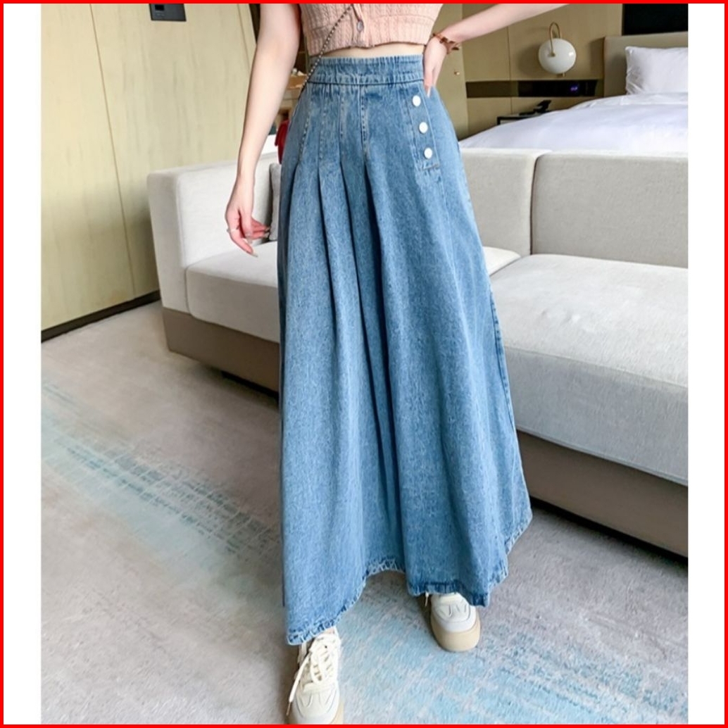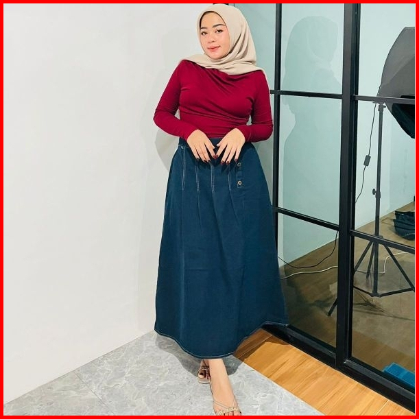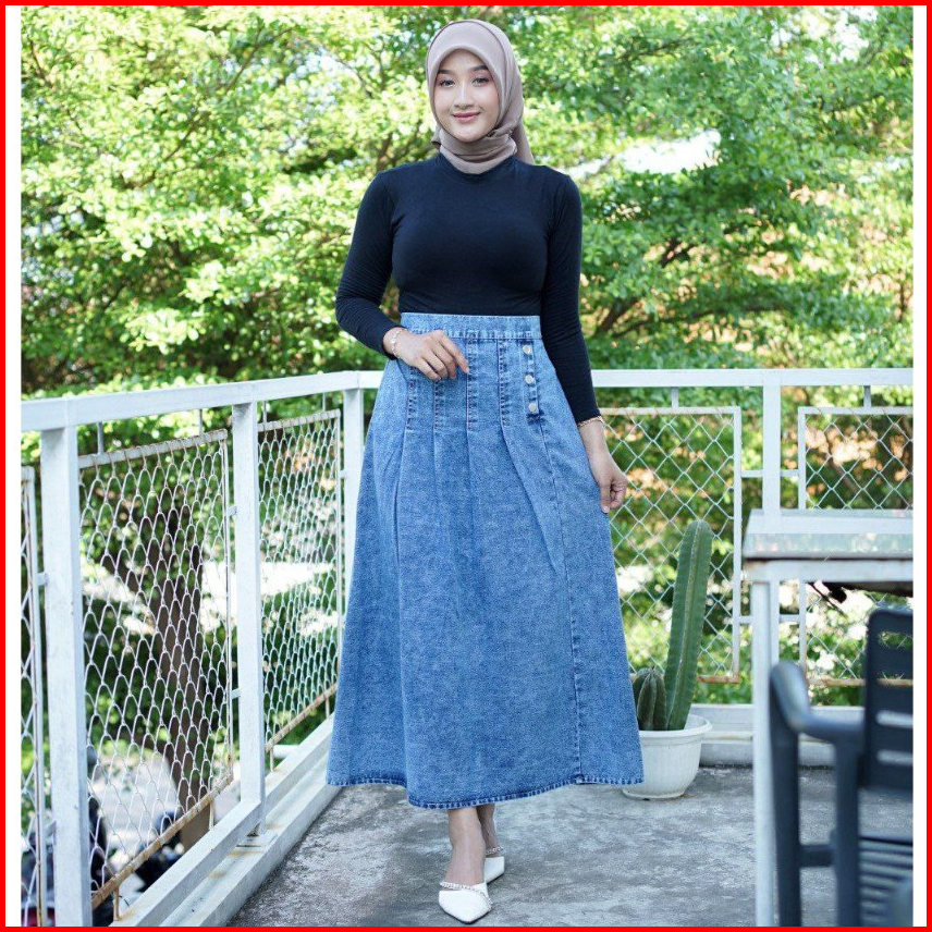 Pg Jeans - Rok Inara Jeans Korean Style Panjang Wanita Kancing Karet Denim