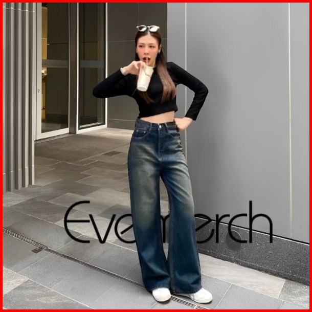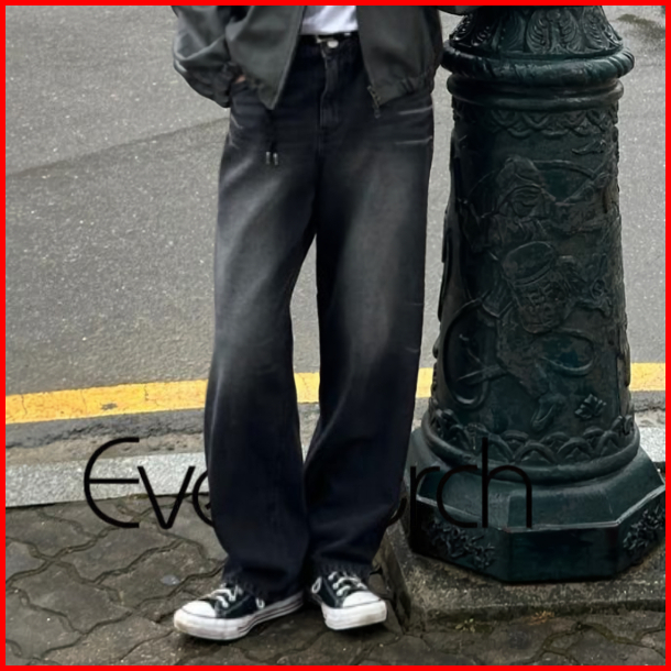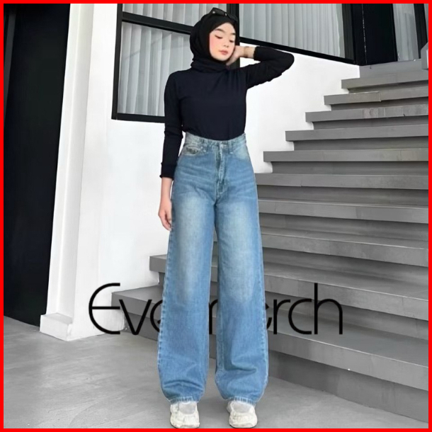 Celana Jeans Gombrong Skena Wide Legs Loose Fit Bahan Denim Warna Hitam Whisker Celana Gombrang