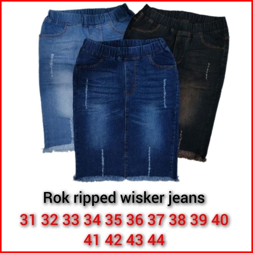 31-44 Rok Jeans Ripped Wanita Rok Wanita 7 8 Jumbo Bahan Jeans Tebal Rok Pendek Jeans Cewek Muat Bb 120kg