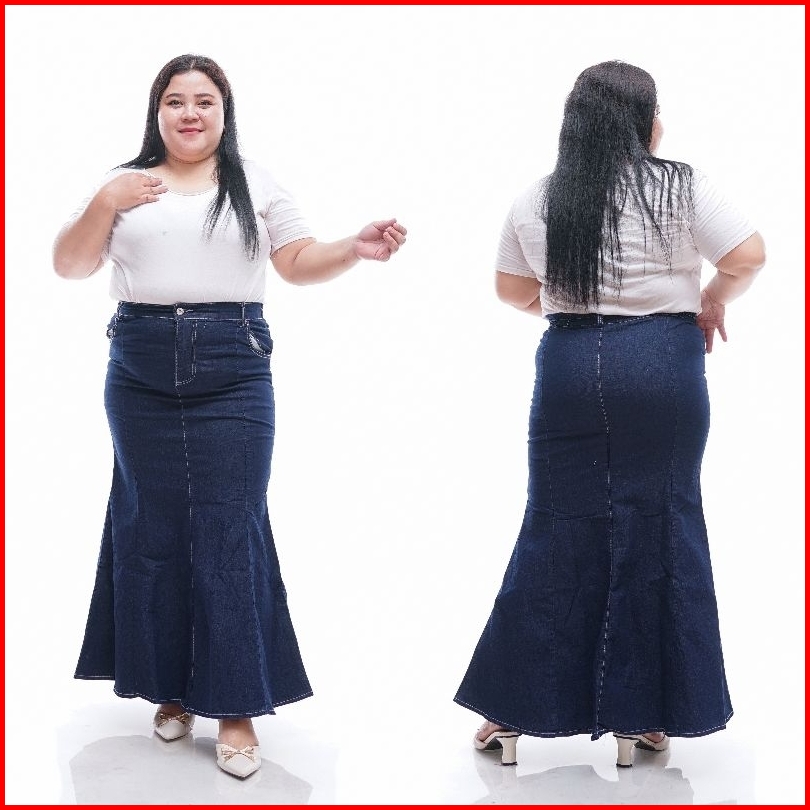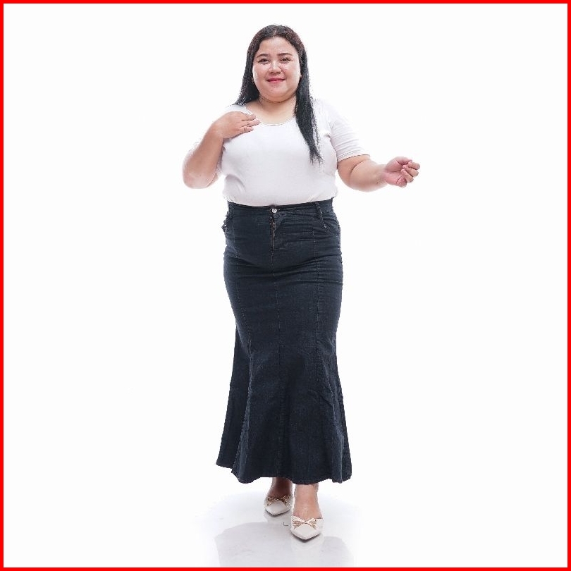Rok Jeans Mermaid Skirt Midi Jumbo Model Duyung Kasual Karet Street