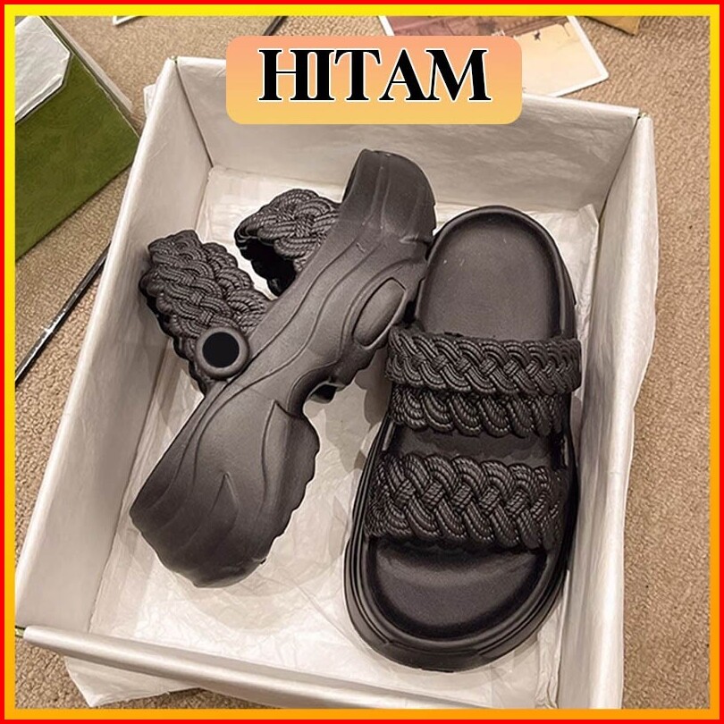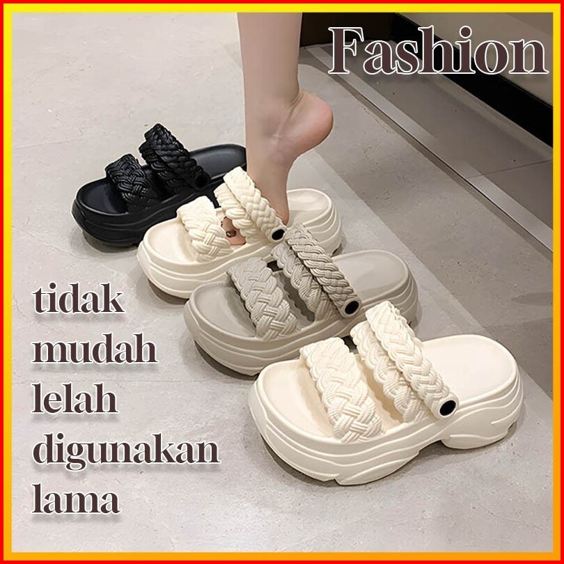Sandal Wedge Wanita Tinggi Jelly Kekinian Korean Style Elegan Casual Eva Sendal Cewek Wanita Platform Tebal 5cm Tenun Lu