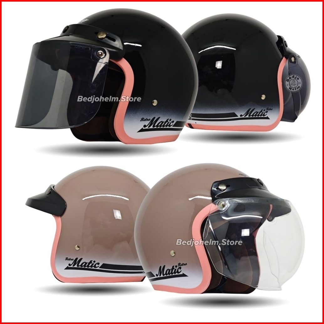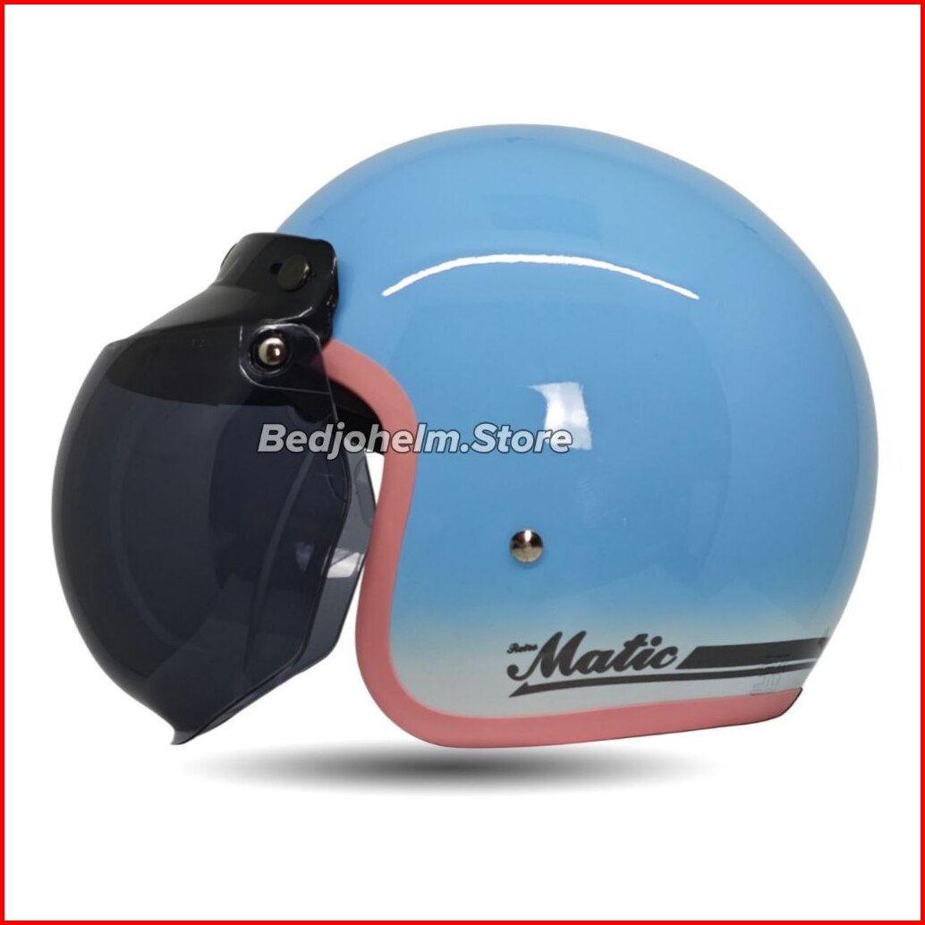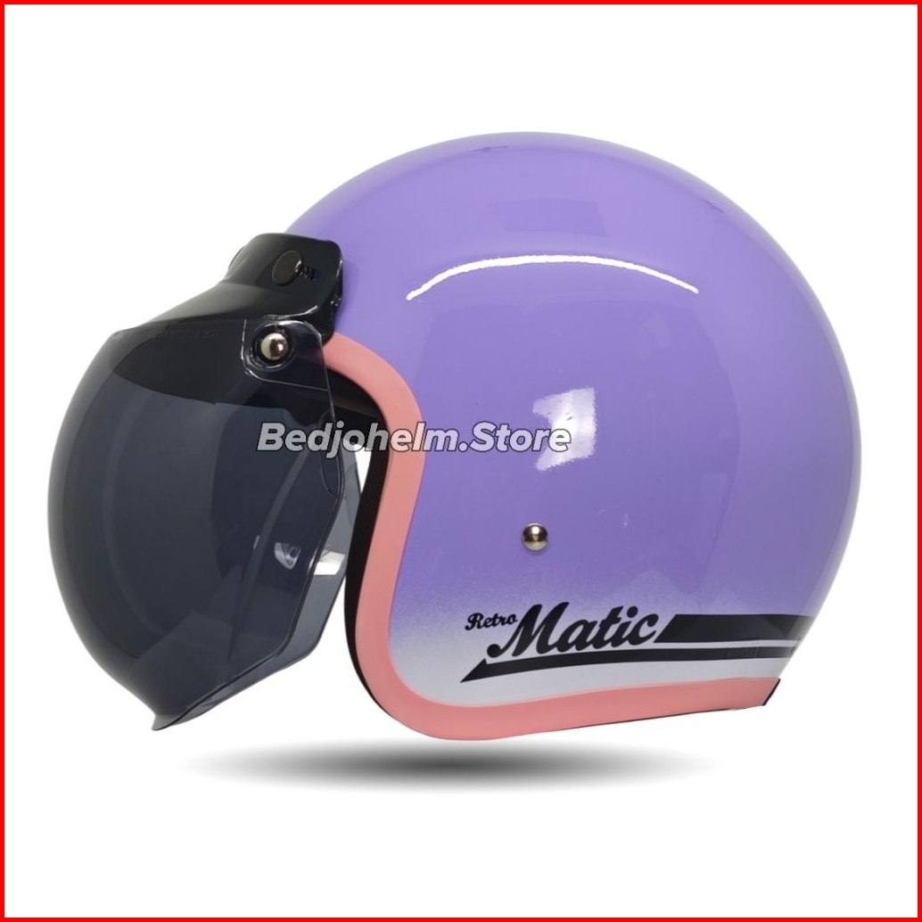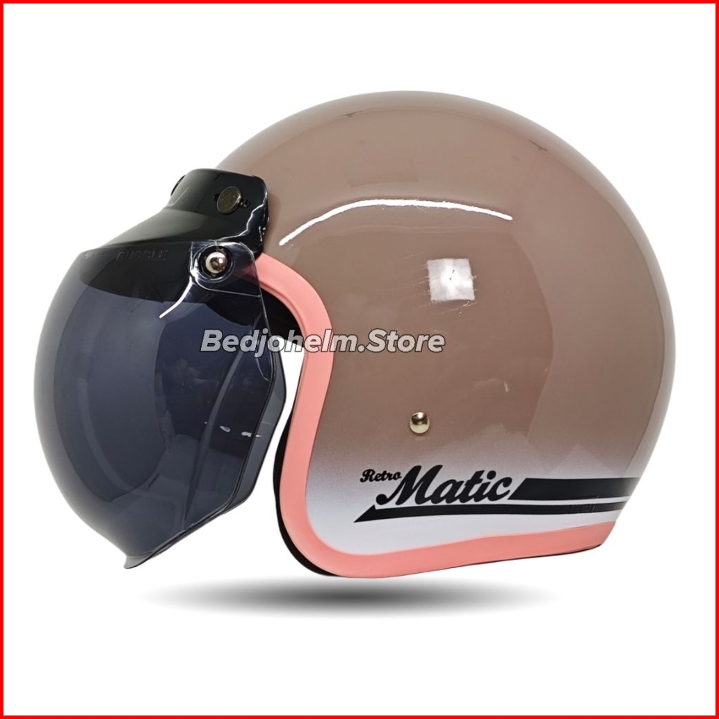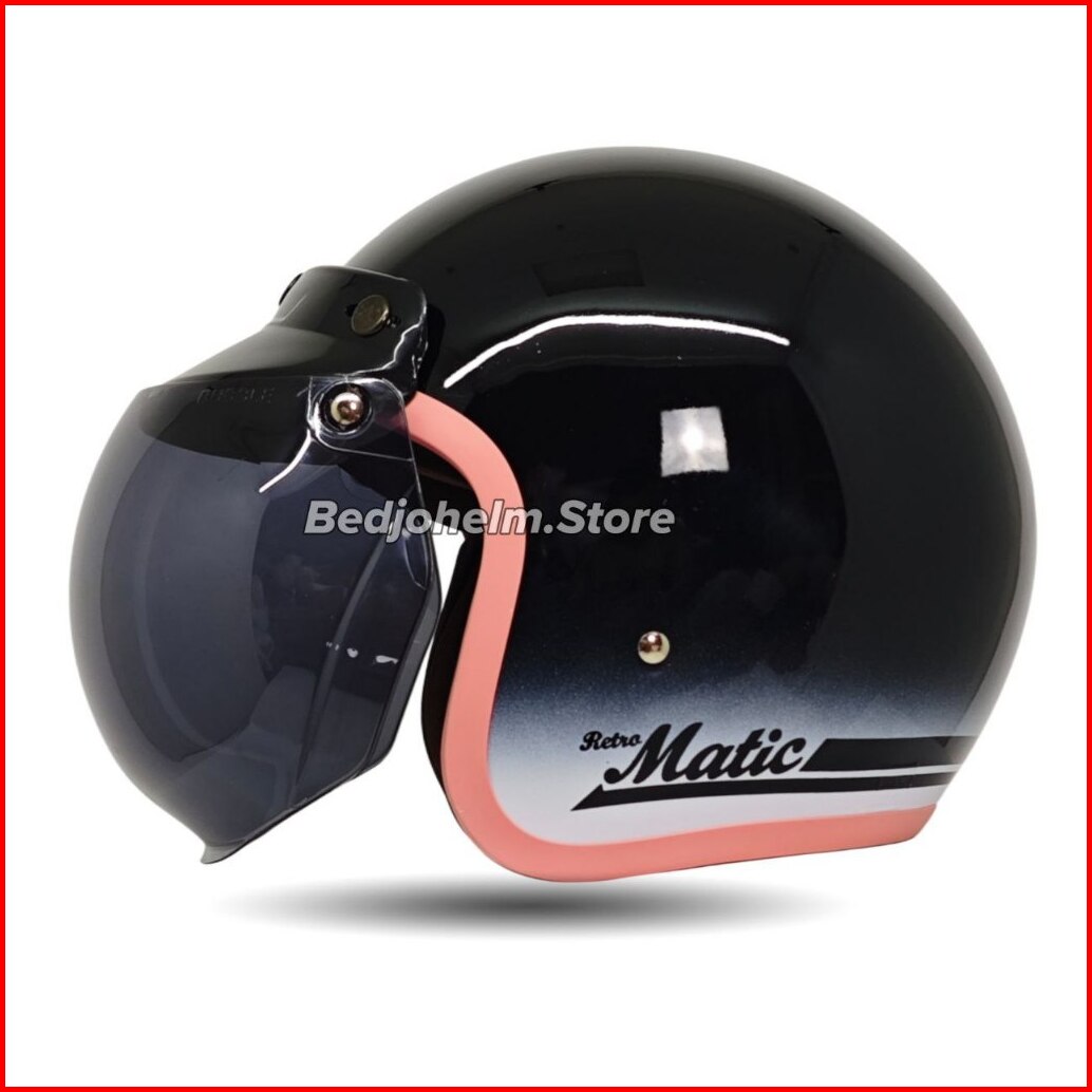 Helm Bogo Classic Gradasi Dewasa Polos List Pink Cewek Wanita Full Leher Sni