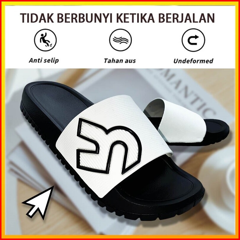 Joymy Sandal Slop Pria Dewasa Casual Kenyamanan Sandal Jelly Pria Terbaru Kekinian Rumah 2024