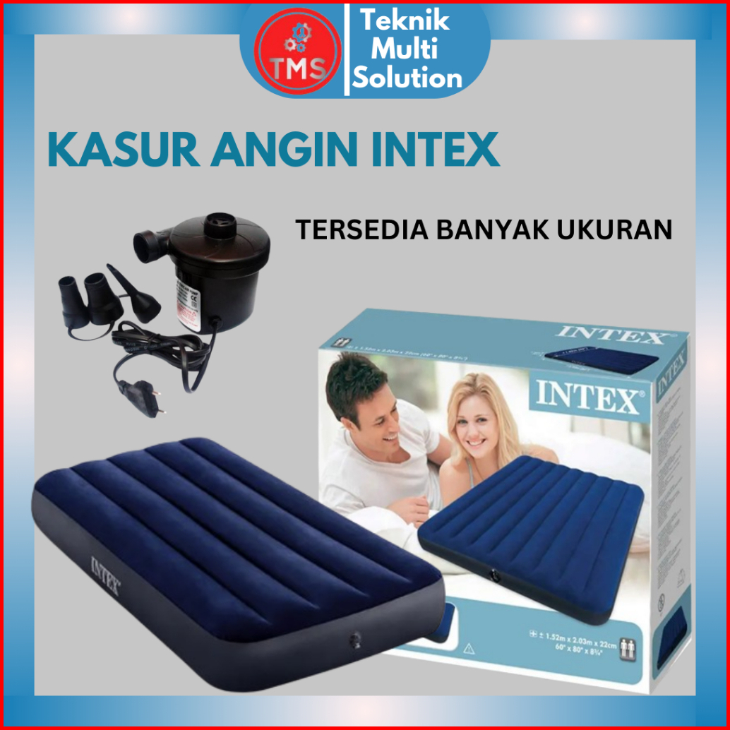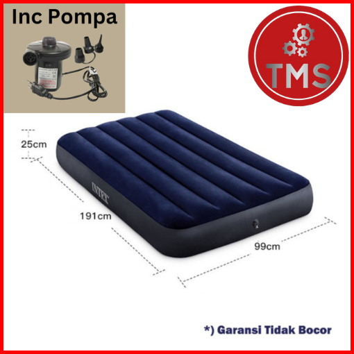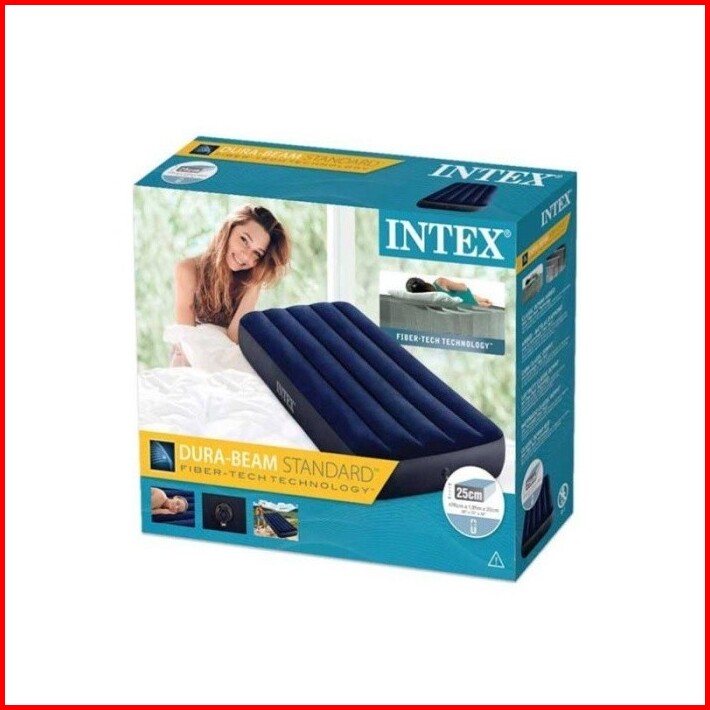 Paket Kasur Angin Intex Pompa Angin Oslo Company Single Bed Matras 99 X 191cm Durabeam Blue Biru