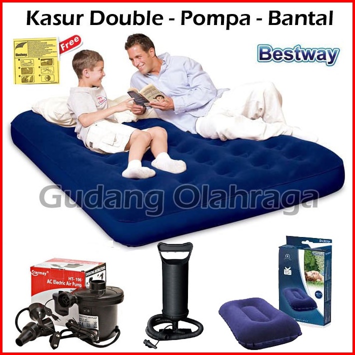 Bestway 67002 Paket Kasur Angin Double Biru 191cm X 137cm Paket Kasur Tiup Air Bed Double