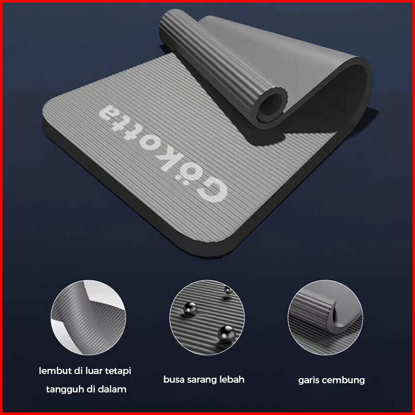 Gokotta Nbr Mat Yoga Bernapas Tahan Air Dan Anti-selip Mat Yoga Tebal Premium Mat Latihan Kebugaran