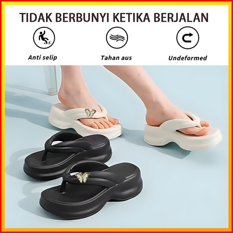 Joymy Sandal Wanita Jepit Karet Jelly Tebal 5cm Motif Casual Korea Eva Premium Sendal Karet Wanita Elegan Tinggi Lucu Ke