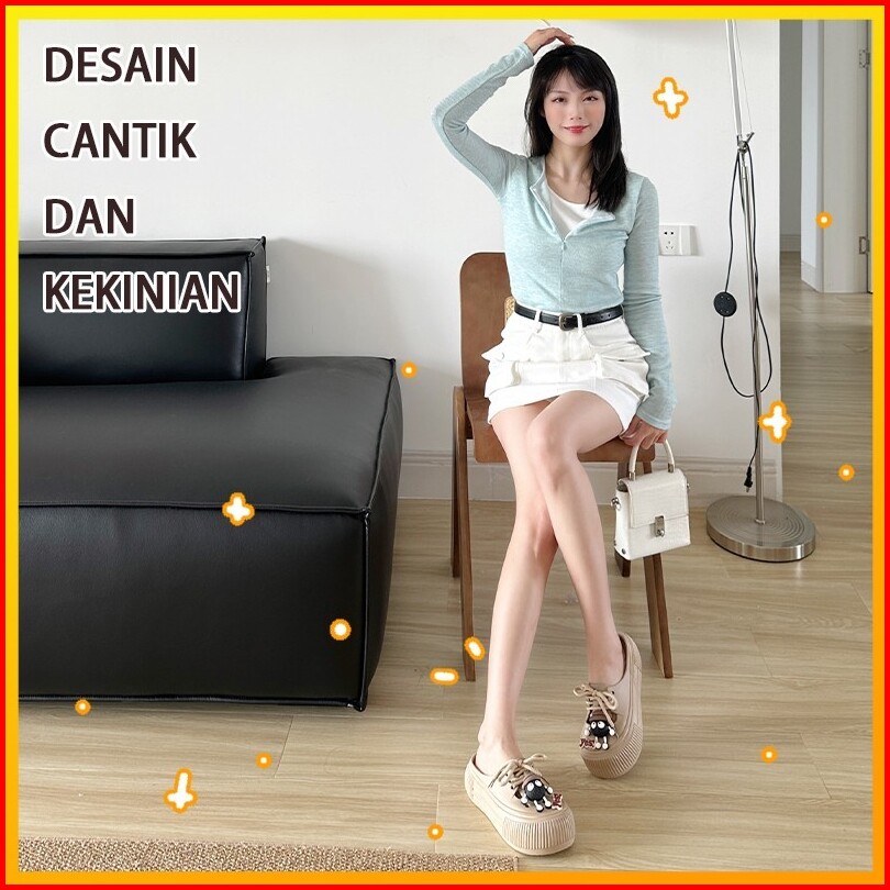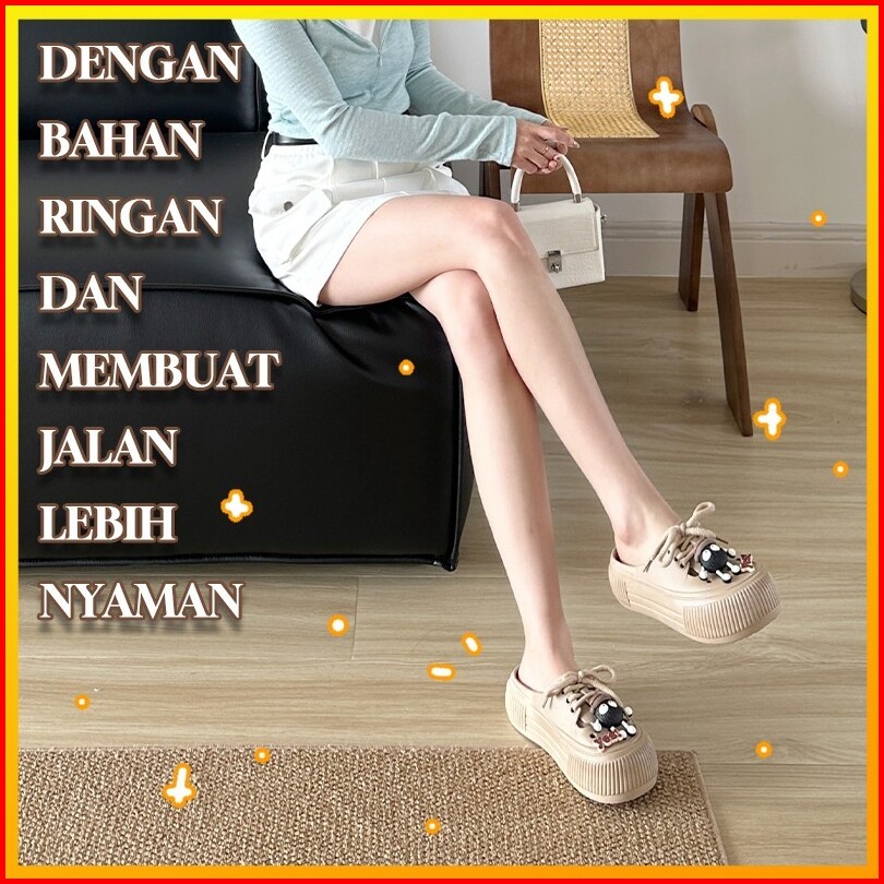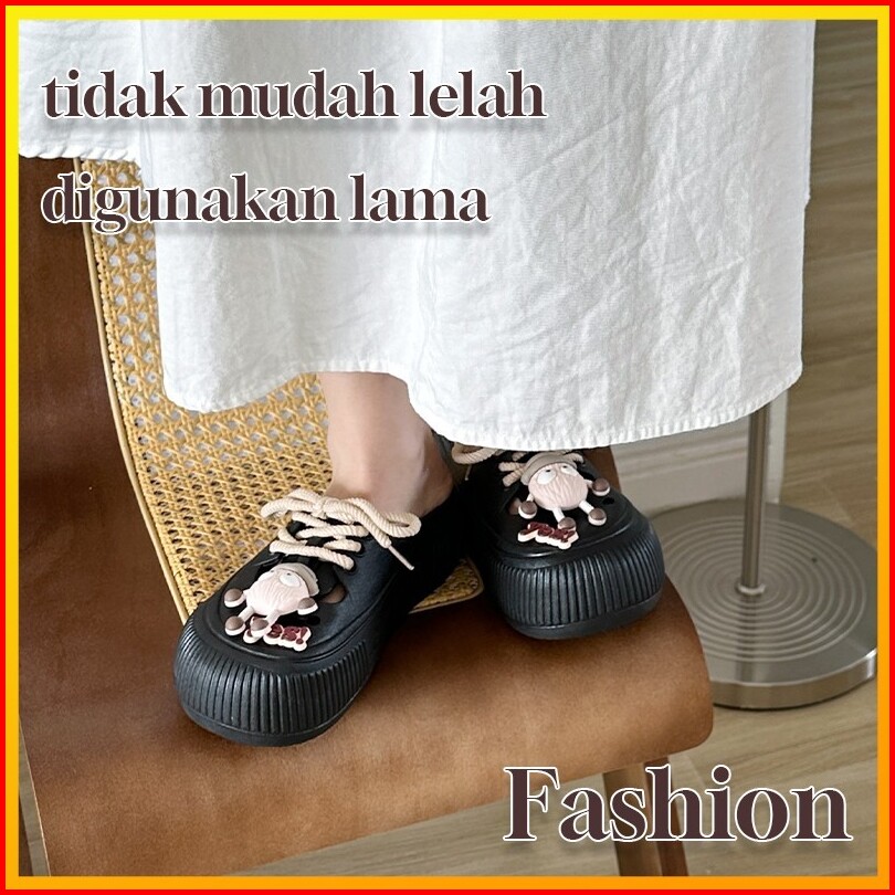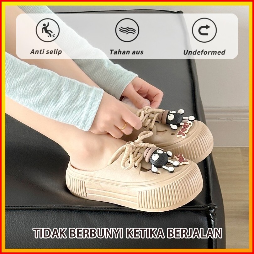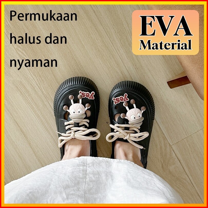 Joymy Sandal Wanita Baim Terbaru 5cm Korean Style Jibbitz Eva Sepatu Sendal Selop Wanita Kodok Lucu Kekinian Anti Slip