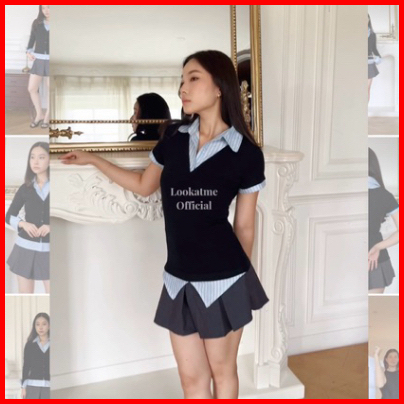 Madden Shirt - Atasan Kemeja Stripe Collar Layered Top Short Sleeve Lengan Pendek Berkerah Vneck Classic Vintage Minimal