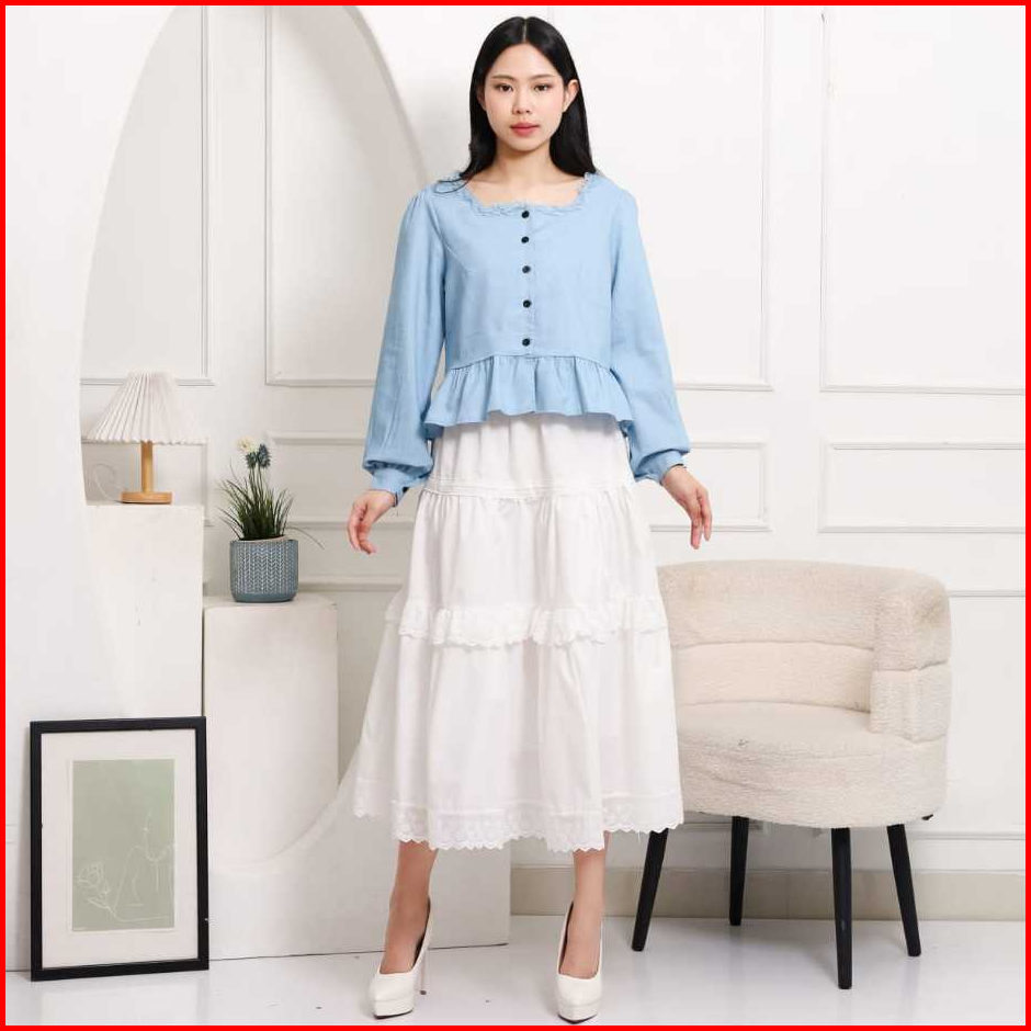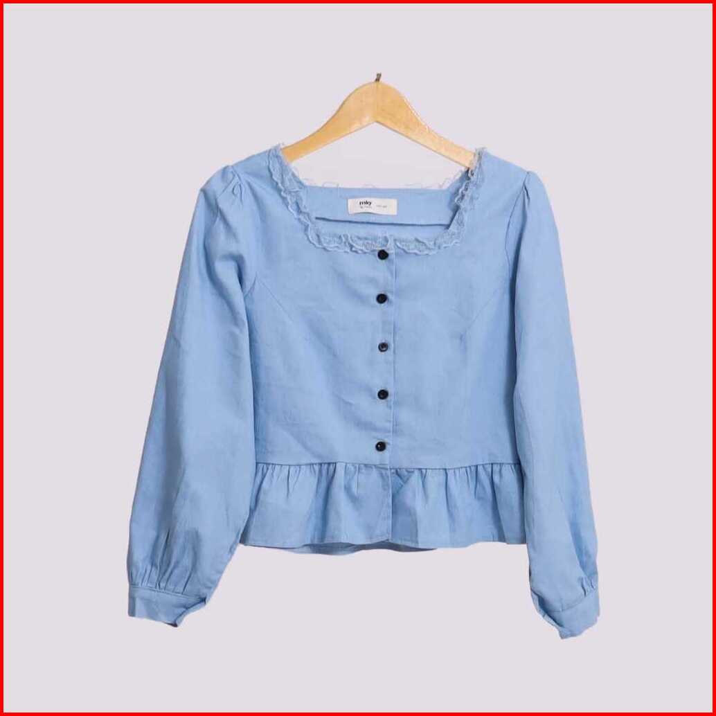 Mky Clothing Blouse Crop Ruffle Blus Lengan Panjang