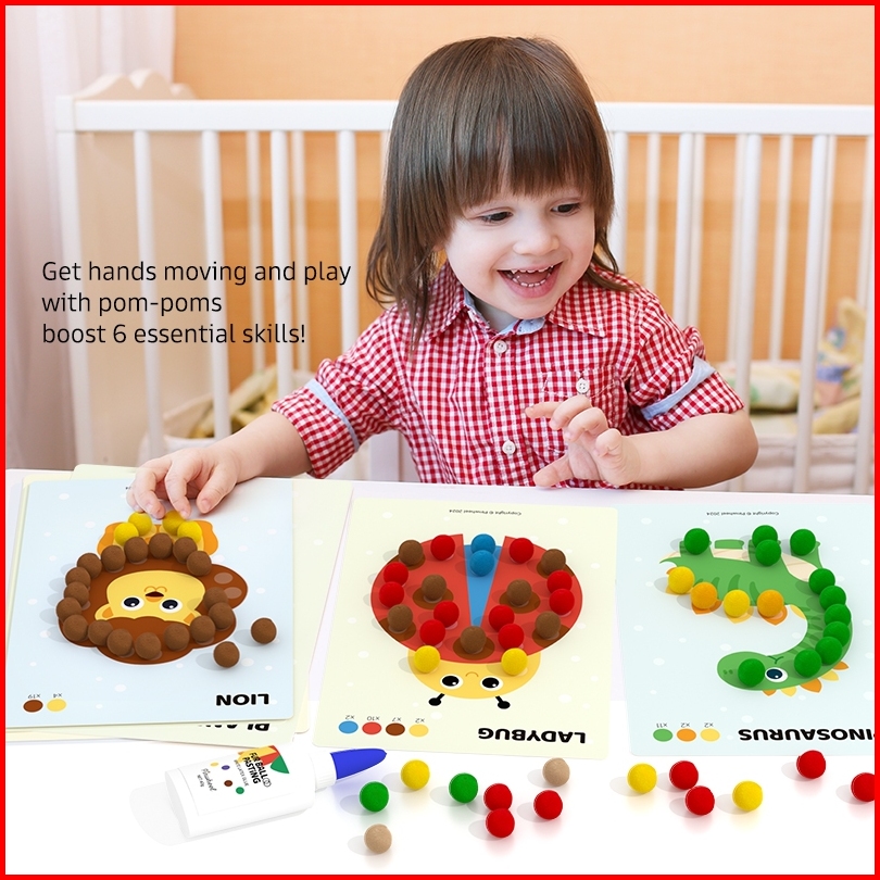 Pinwheel Fur Ball Pompom Diy Sticker Dot Paper Set Craft Children Gambar Menempel Edukasi Mewarnai