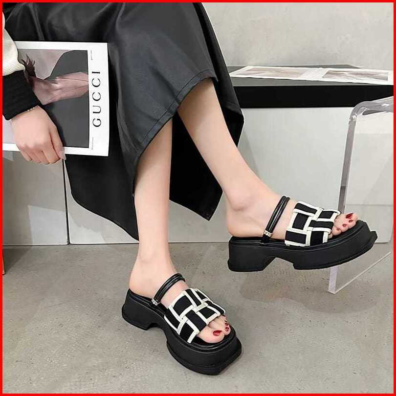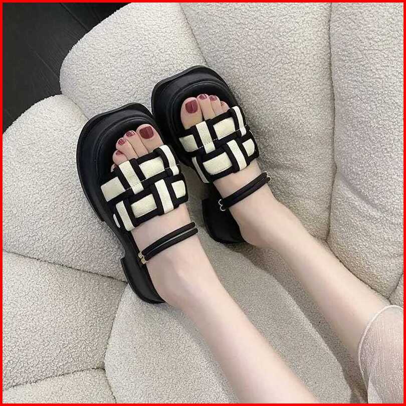 Diata Sandal Wedges Flatporm Wanita Tali Anyam Selop Kondangan Kekinian Women Sandal Korea Hitram Sendal Perempuan