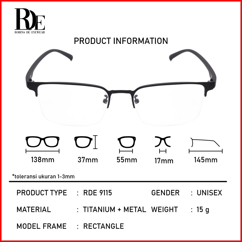 Robins Kacamata Photocromic Minus Style Bisnis Lentur Frame Kacamata Pria Wanita Blueray Bluecromic 9115