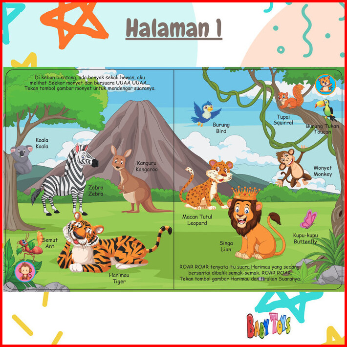 Babytoys Ebook Edukasi Anak Mainan Buku Belajar Hewan Sahabatku Elektronik 8 Tombol Suara 50 Hewan