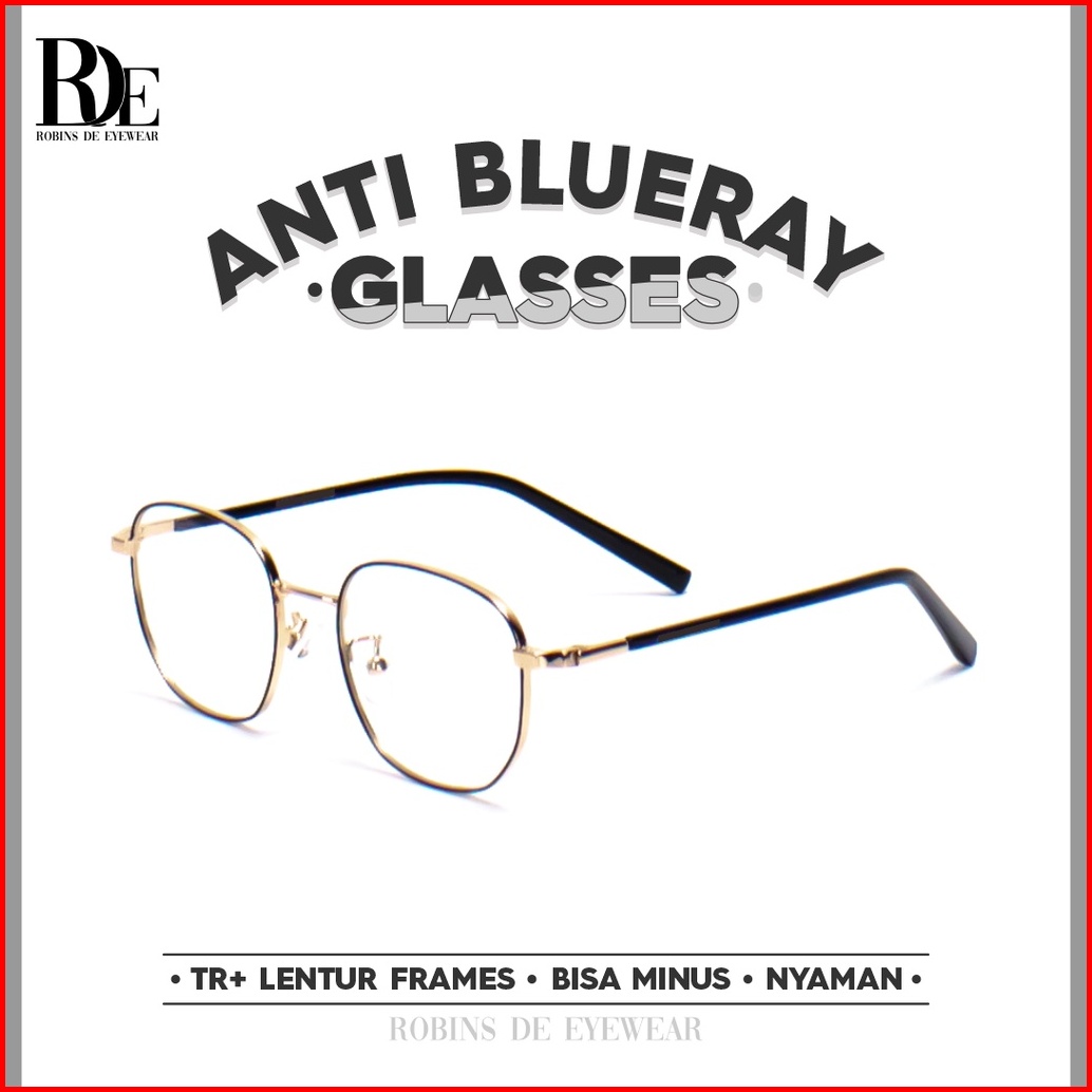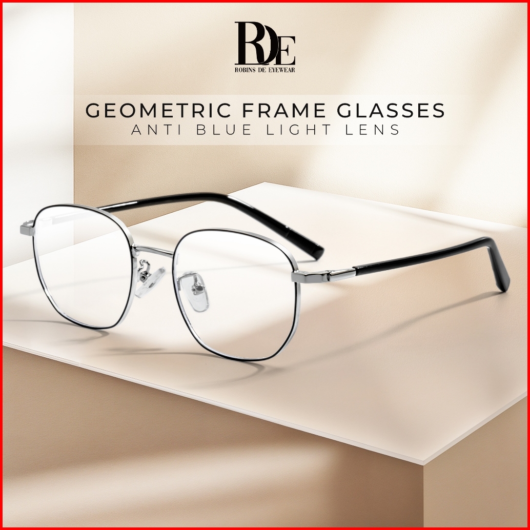 Robins Kacamata Minus Geometric Metal Anti Radiasi Blueray Photocromic Bluecromic Fashion Pria Wanita 8624