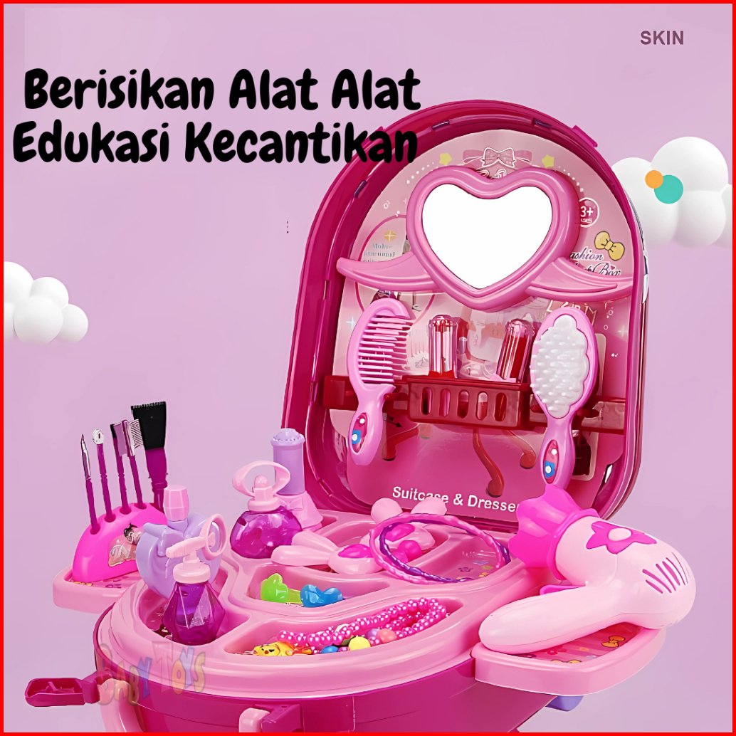 Babytoys Mainan Anak Perempuan Salon Salonan Meja Rias Kecantikan Make Up 3 In 1 Edukasi Koper
