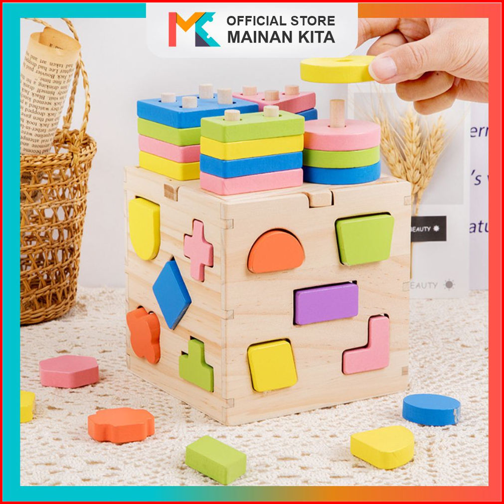 Mk907 Mainan Edukasi Kayu Motorik Puzzle Geometri Wooden 3d Toy Box
