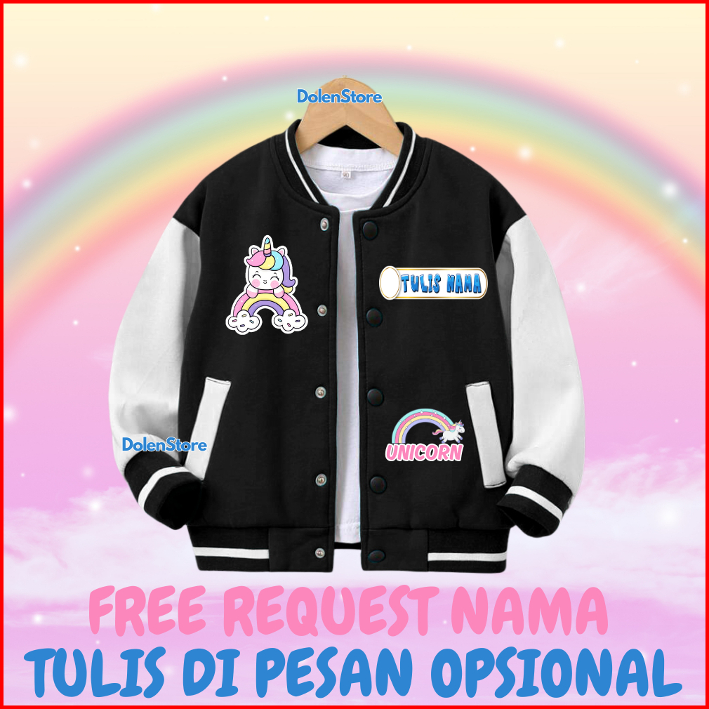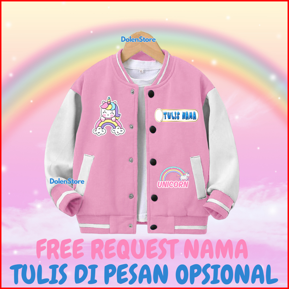Jaket Unicorn Custom Nama Sweater Anak Perempuan Cewek Usia 2-12 Tahun