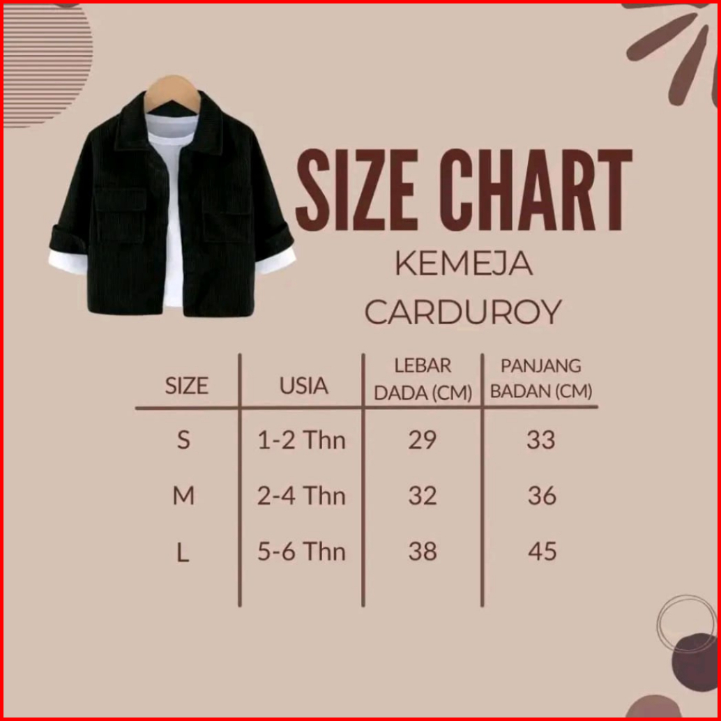 Kemeja Corduroy Anak Laki Laki Usia 1- 6 Tahun