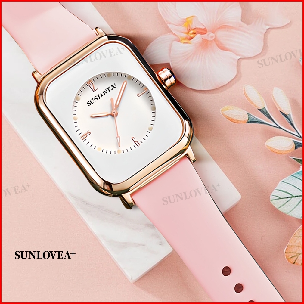 Sunlove A Sastra Persegi Malam Cahaya Quartz Jam Tangan Merah Bergaya Berwarna Silikon Persegi Kecil Pria Dan Wanita Pas