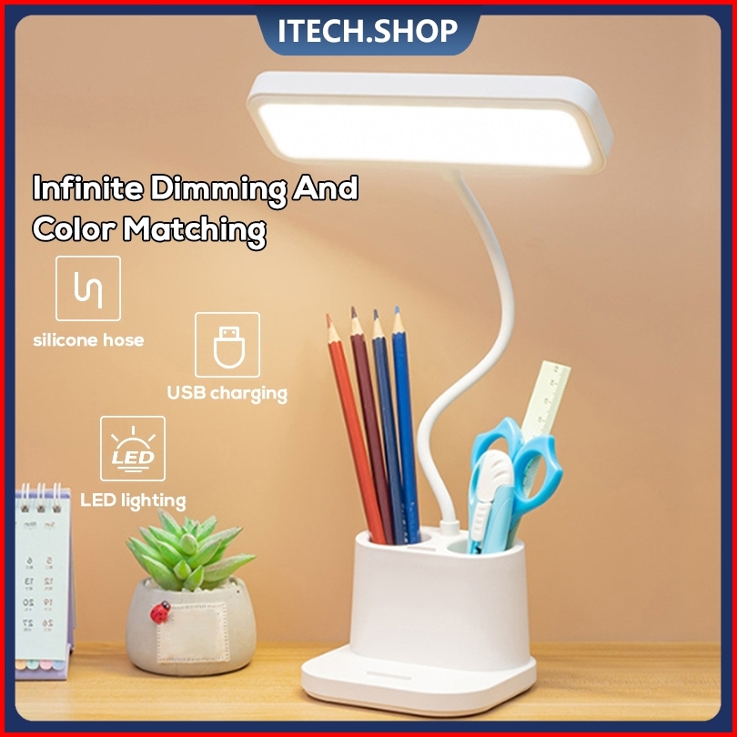 Rechargeble Led Lampu Meja Lampu Belajar Three Color Adjustable Lampu Malam Lampu With Kotak Penyimpanan Pensil