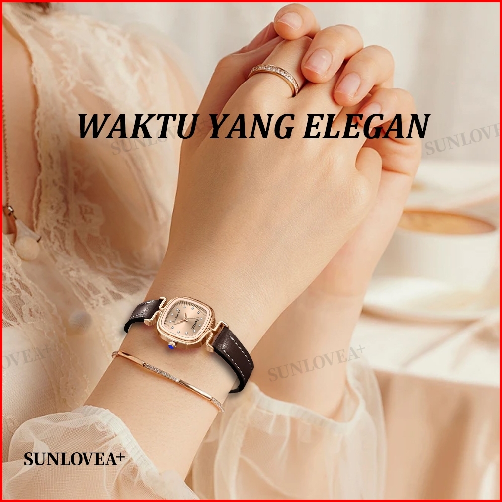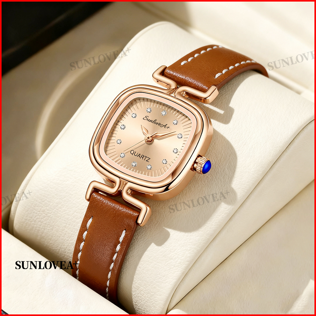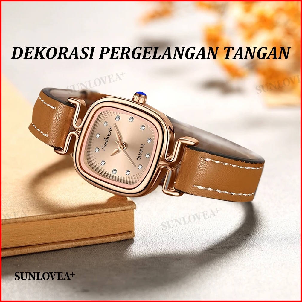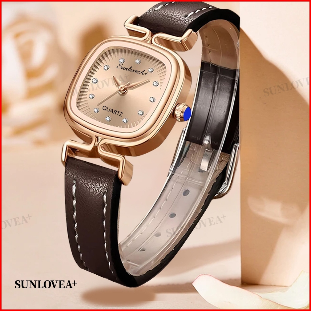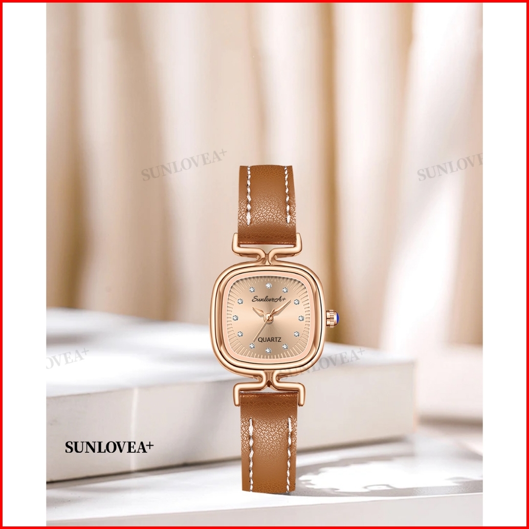 Sunlovea Jam Tangan Persegi Wanita Sederhana Ringan Mewah Desain Minimalis Vintage Seni Tinggi Gaya Tren Kecil Dan Halus