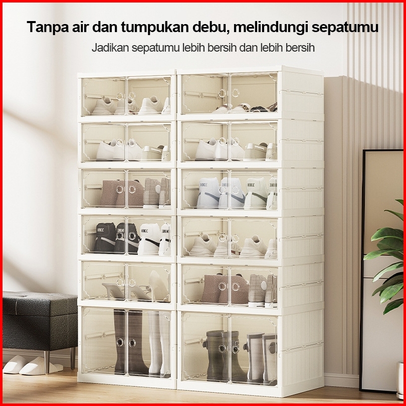 Tanpa Instalasilemari Sepatu Rak Sepatu Susun Lipat Tertutup Bening Lemari Lipat Pintu Magnet Kotak Sepatu Lipat