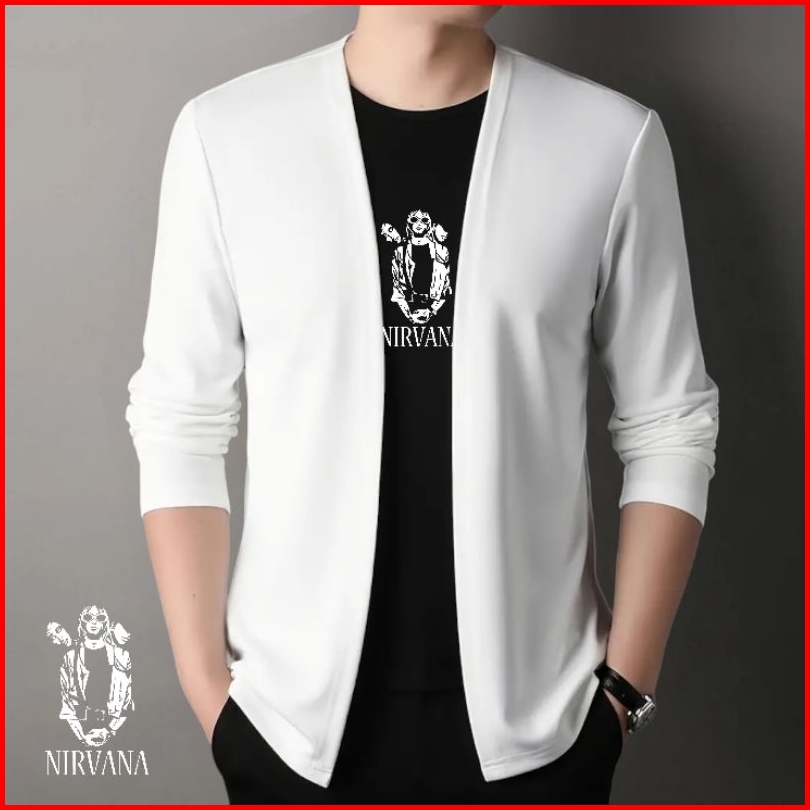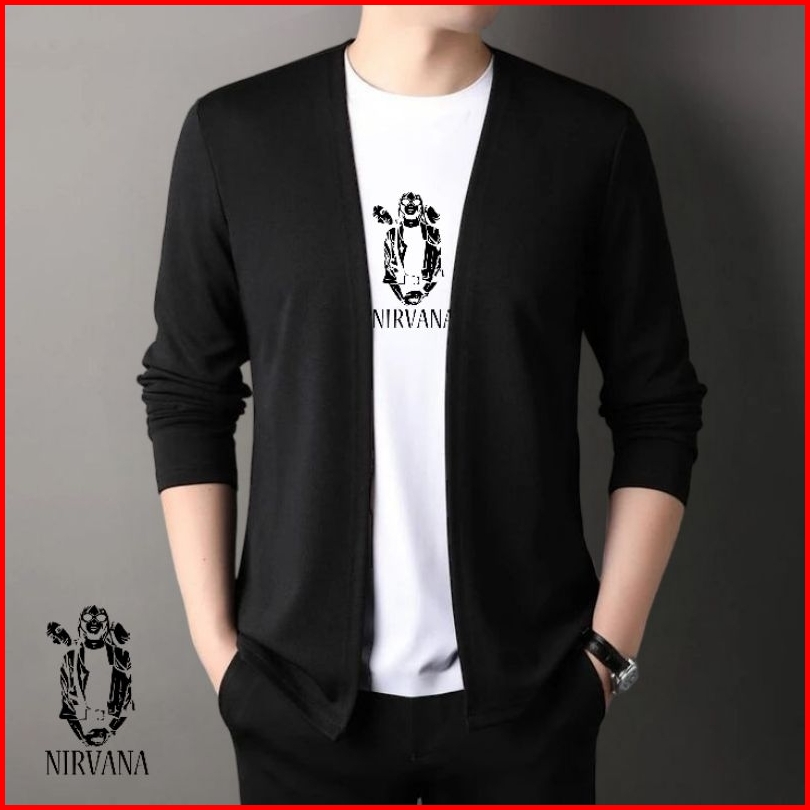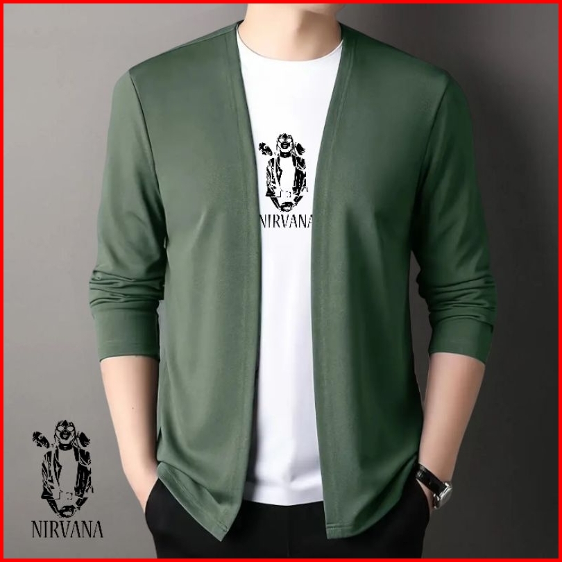 Kaos Lengan Panjang Cardigan V-neck Atasan Rajut Pria Jahitan Mode Dua Badan Aktif