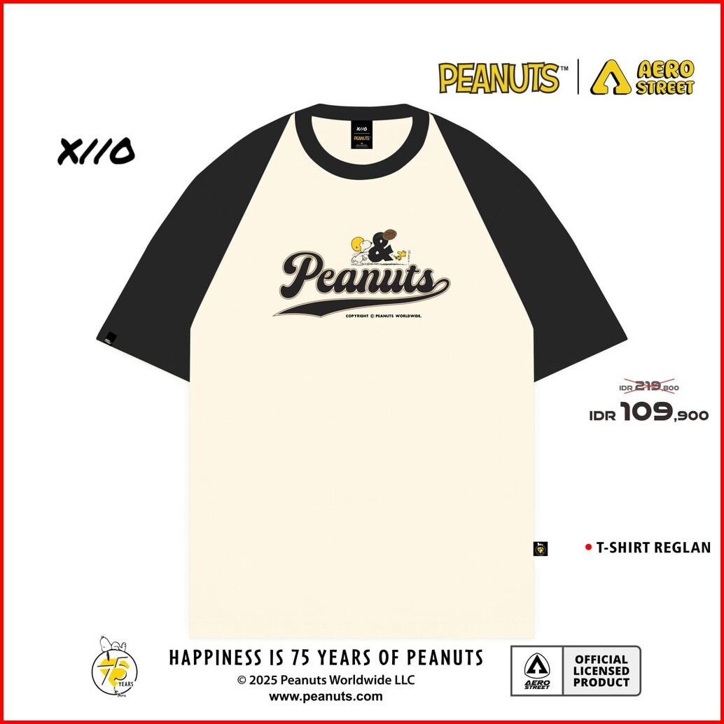 Aerostreet T Shirt Boxy Reglan Snoopy Peanuts Cream Hitam Kaos T Shirt Fbdaa