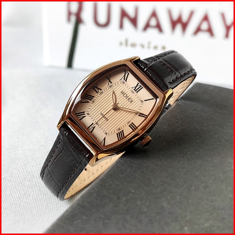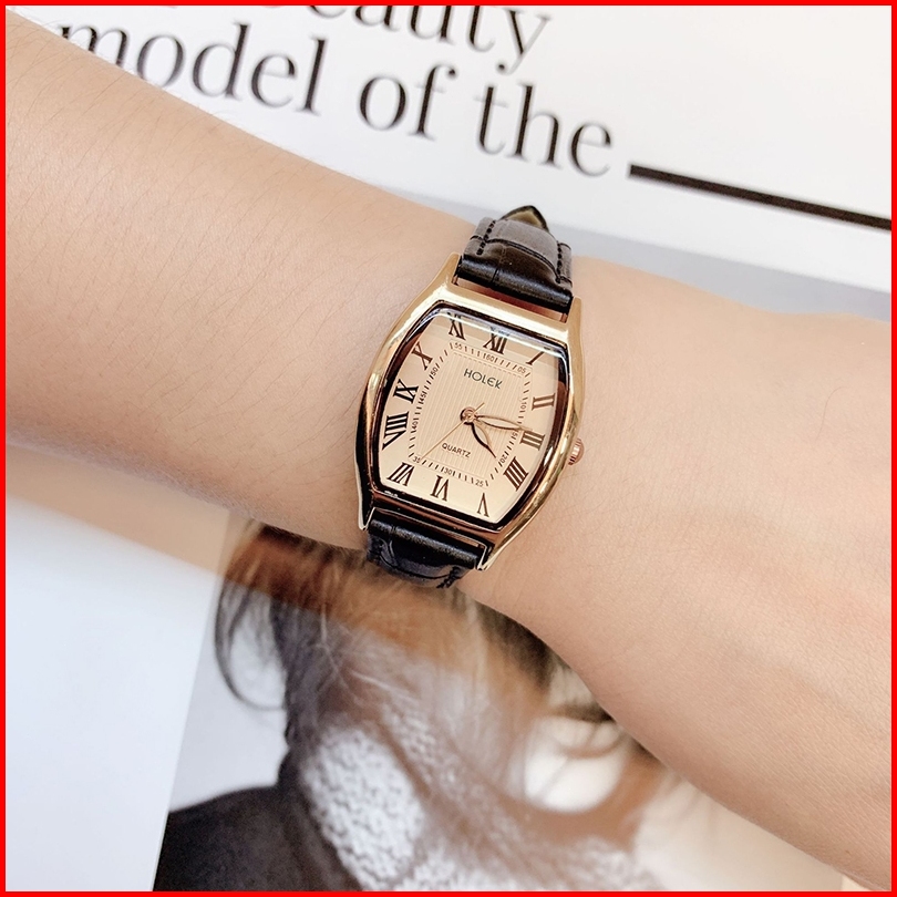 Holek 7171 Jam Tangan Wanita Anti Air Vintage Kasual Tali Kulit Quartz Jam Tangan Cewek Kotak Gratis
