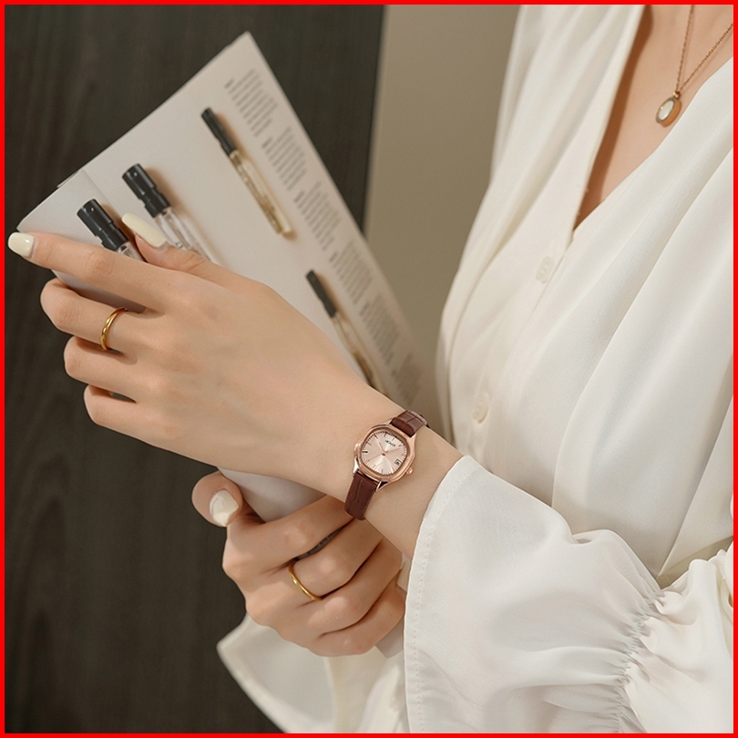 Holek 1215 Jam Tangan Wanita Anti Air Minimalis Retro Kulit Tali Jam Tangan Cewek Kotak Gratis