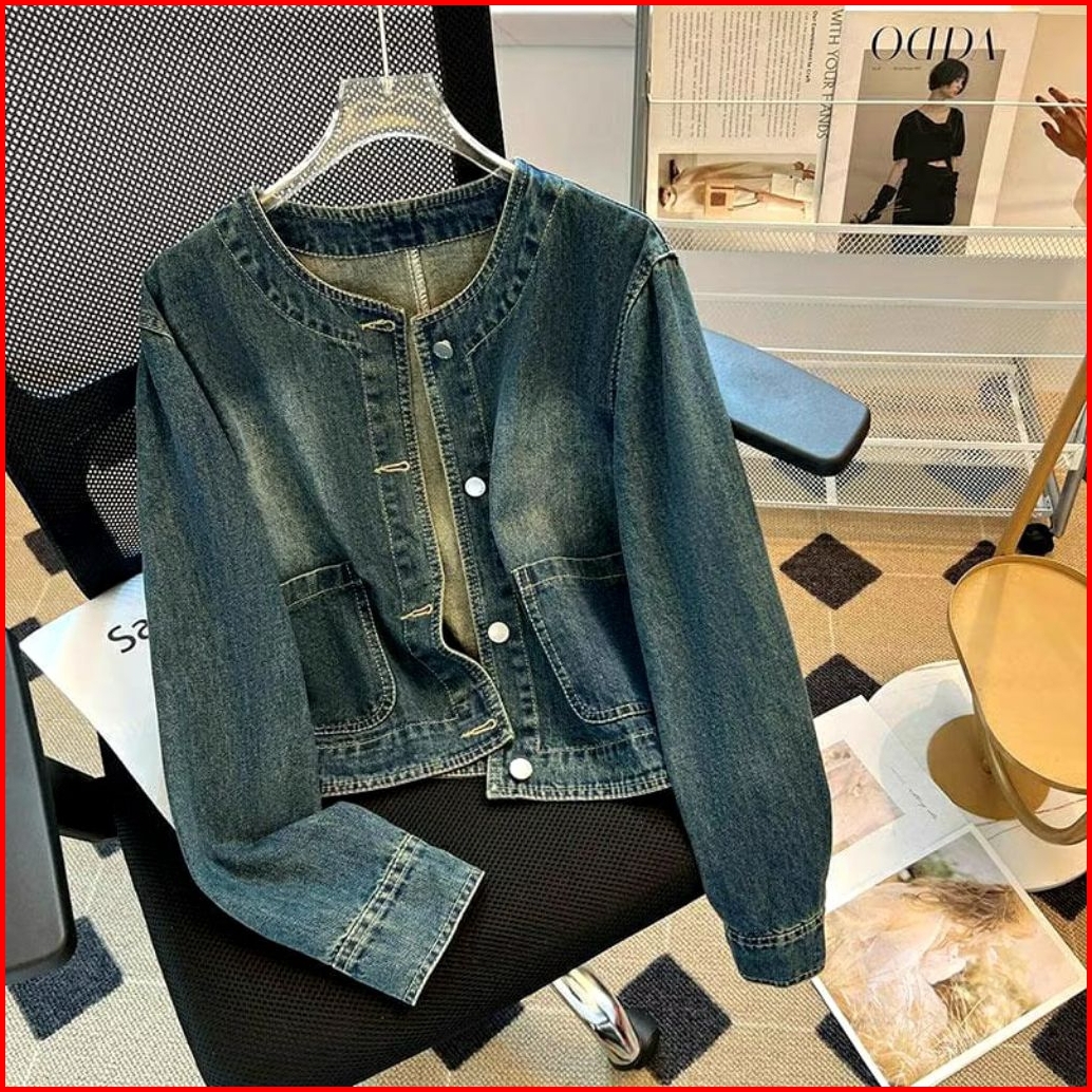 Jaket Jeans Wanita Exxo Clara Cardi Jaket Jeans Leher Sanghai Kekinian