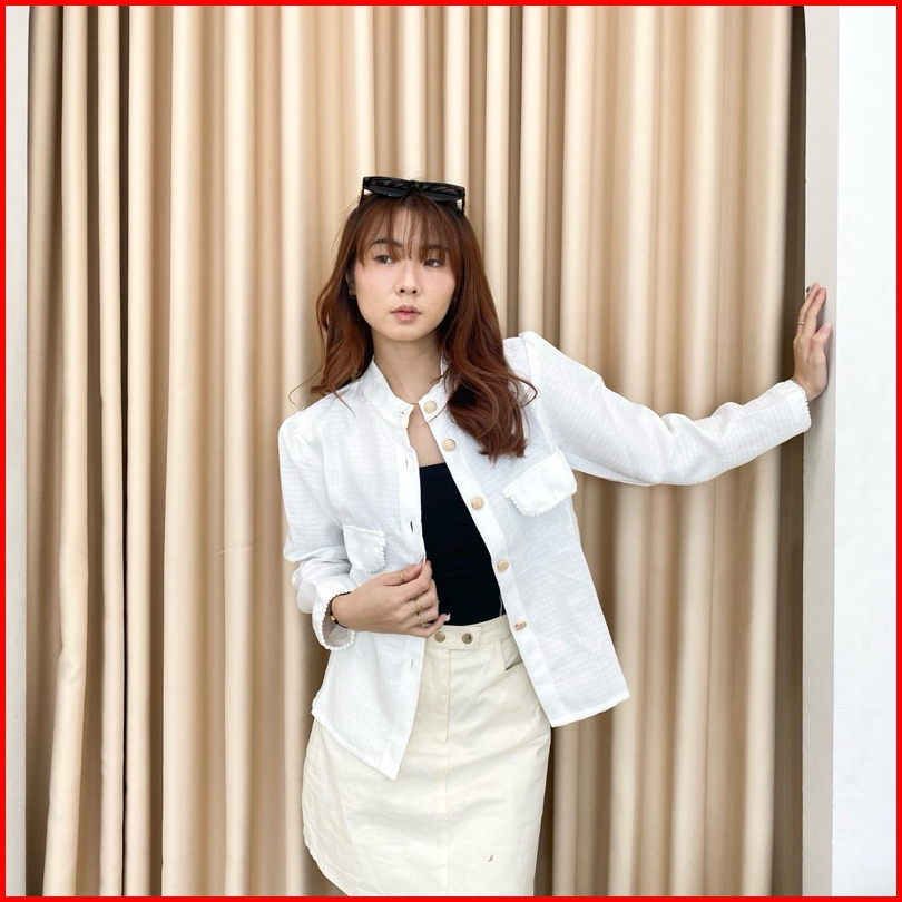 Ave - Mirae Blazer Outer Button Pompom Vintage Atasan Cardigan Blazer Kantoran Wanita Kotakkotak